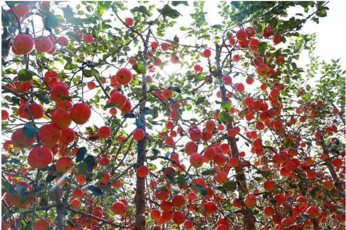 “现在我的苹果树,全部采用国产苹果矮化砧,这种砧木嫁接出来的果树根系发达、固地性强、耐瘠薄,搭配上秦脆、瑞雪等本土高端品种,果树成花、挂果优势集成。优质优价的苹果,本源在‘根’!”他说。