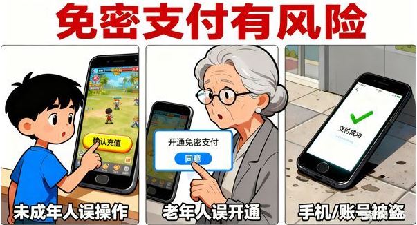 但“无感消费”在方便之余,也伴随一些糟心事。有家长发现孩子没经过同意,就在电商、游戏平台用免密付了钱;还有老人操作不熟练,误点开通免密,钱被扣了都不知道。更让人担心的是,如果手机丢了或者账号被盗,别人能直接刷走你的钱,二次验证都没有,想想都后怕。