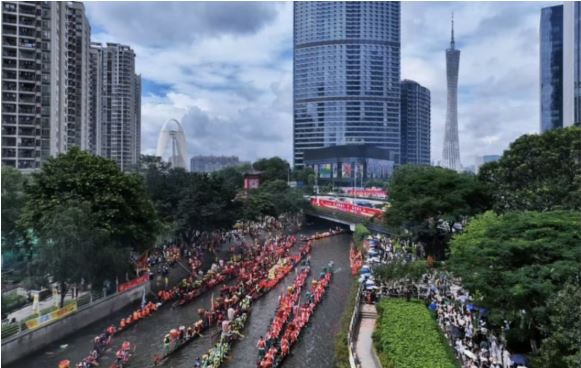 一方面,天河区高标准推进车陂涌整治与碧道建设,传承“车陂扒龙舟”等非遗文化,吸引社会力量广泛参与,形成“民俗+治水”双保育模式,每年车陂涌龙舟赛吸引近20万人次,有效带动周边文旅消费,擦亮“体育+生态+文化”新名片。