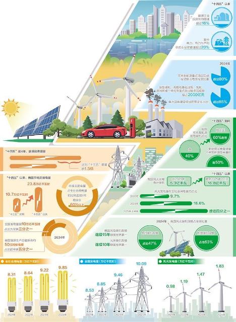 能源生产总量占比超全球五分之一、构建起全球最大可再生能源体系、建成全球最大的电动汽车充电网络、光伏转换效率和海上风电单机容量不断刷新世界纪录……“十四五”以来,我国能源事业取得突破性进展和历史性成就,14亿多人的能源安全得到有效保障,绿色低碳发展举世瞩目,充分展现了中国发展的韧性与底气。